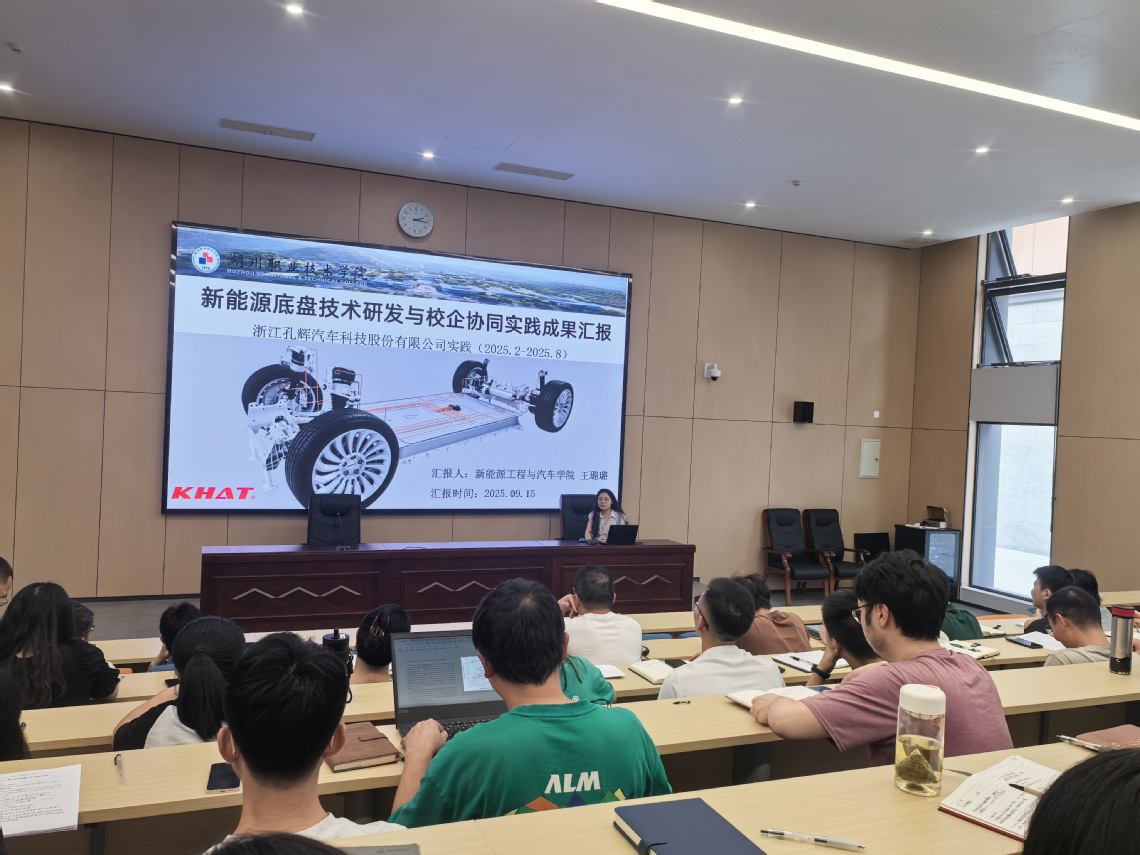 2025年9月29日,新能源工程与汽车学院召开全院大会,王璐璐老师就2025年2月至8月期间赴浙江孔辉汽车科技股份有限公司开展的脱产入企服务实践进行了系统总结与汇报。