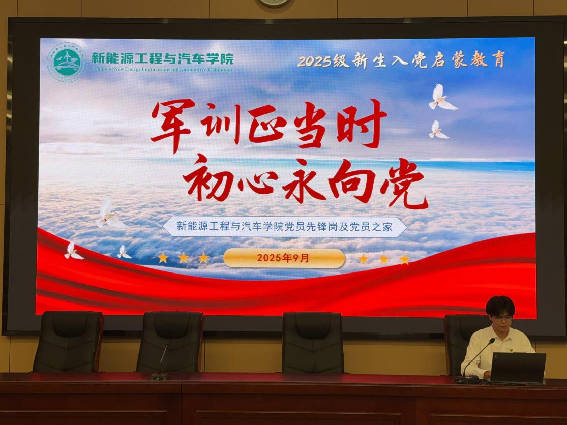 为进一步引导新生积极向党组织靠拢,激发其爱国情怀与使命担当,新能源工程与汽车学院组织学生党员走进青春夜校面向全体新生开展入党启蒙教育,将“红色种子”播撒进学生心中。