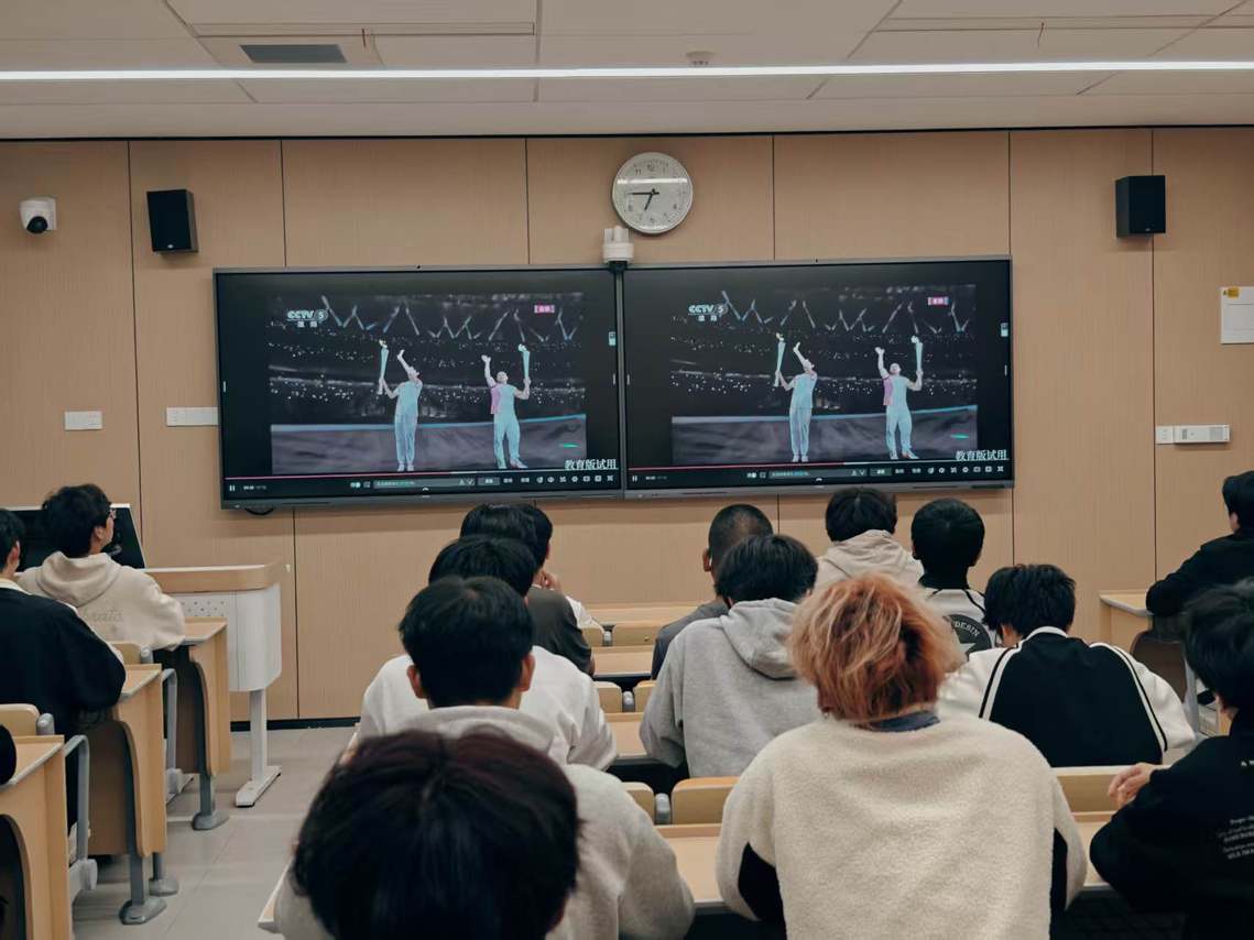 活动前期,学院提前调试好各教室多媒体设备,确保回放画面清晰、播放流畅。开幕式伊始,当激昂的国歌奏响、五星红旗冉冉升起时,全体学生自觉起立,肃然行注目礼,现场洋溢着浓厚的爱国情怀。回放过程中,学生们全神贯注,时而为开幕式展现的中华优秀传统文化魅力惊叹不已,时而为运动健儿们入场时的昂扬姿态鼓掌喝彩,时而为科技与艺术交融的创意表演低声赞叹。观看间隙,部分班级还组织了小型交流环节,学生们分享着对开幕式亮点的见解,畅谈着对体育精神的理解。