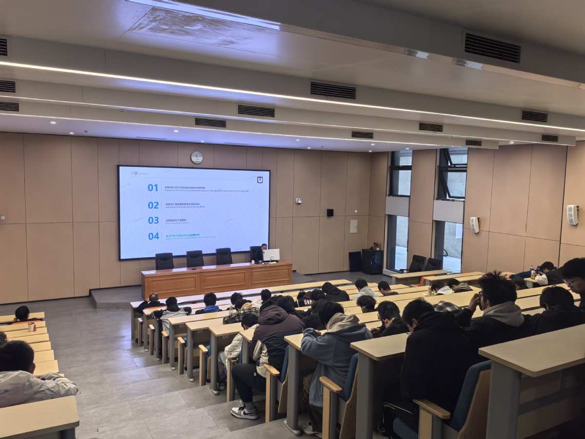 讲座中,魏总结合吉利商用车集团在新能源汽车动力系统研发、生产及市场应用的多年实践经验,以“产业升级-技术突破-人才需求”为主线,从产业趋势、前沿技术、岗能适配、产教融合四大核心维度展开深度分享。最后,魏总还与现场师生就新能源汽车技术瓶颈、就业发展前景等问题进行互动交流,解答了师生关心的行业热点问题。