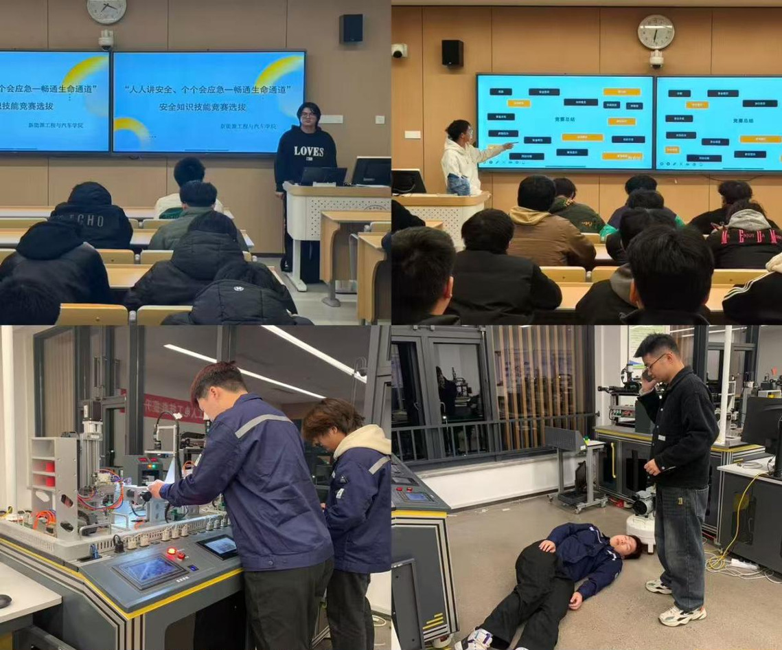为强化师生安全意识,提升应急处理能力,新能源工程与汽车学院于2025年11月18日组织开展了“人人讲安全、个个会应急——畅通生命通道”为主题的安全知识技能竞赛及设备触电应急演练活动。