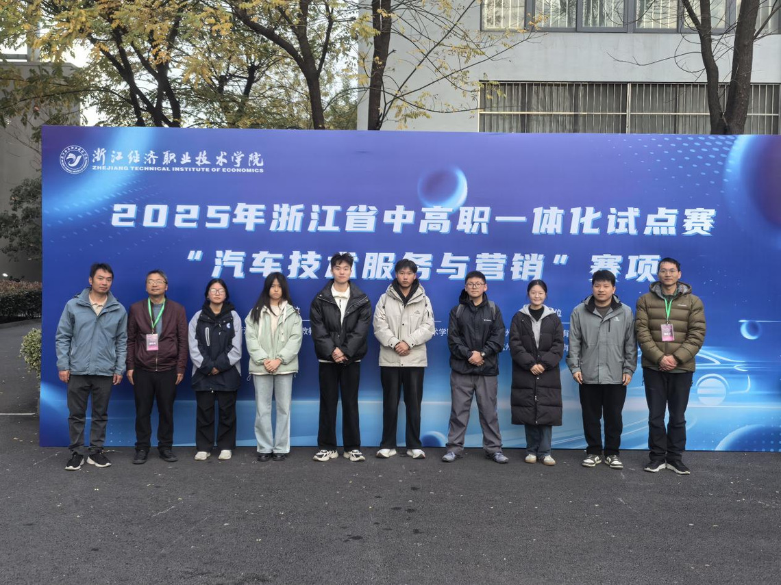 12月5日至6日,2025年浙江省中高职一体化试点赛“汽车技术服务与营销”项目比赛在浙江经济职业技术学院举行。我校新能源工程与汽车学院派出三支队伍分别与长兴县职业技术教育中心学校、湖州交通技师学院、德清职业中等专业学校组队参赛,经过赛场的激烈角逐,我校新能源工程与汽车学院学生在比赛中发挥出色,黄锋老师指导的苍涛获得三等奖、范天赐老师指导的彭素娟获得三等奖。